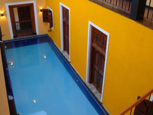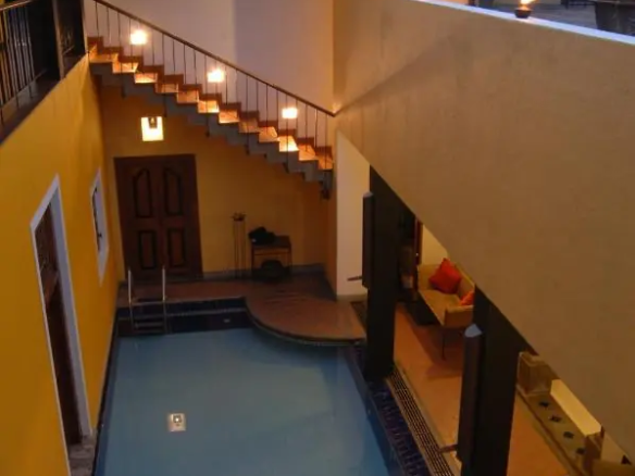 Indoor Pool: A sunlit indoor pool situated in the centre of the villa provides a refreshing retreat. You can enjoy the unique experience of jumping directly from your room into the pool or relaxing with your feet in the water.
